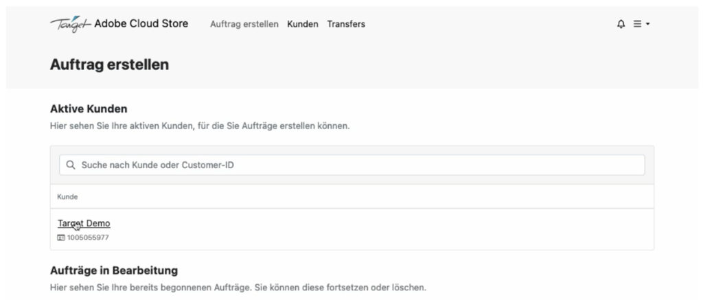 Mittels Kunden-ID den Kunden finden und auswählen.